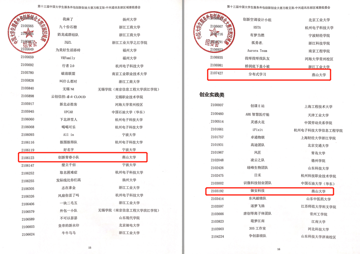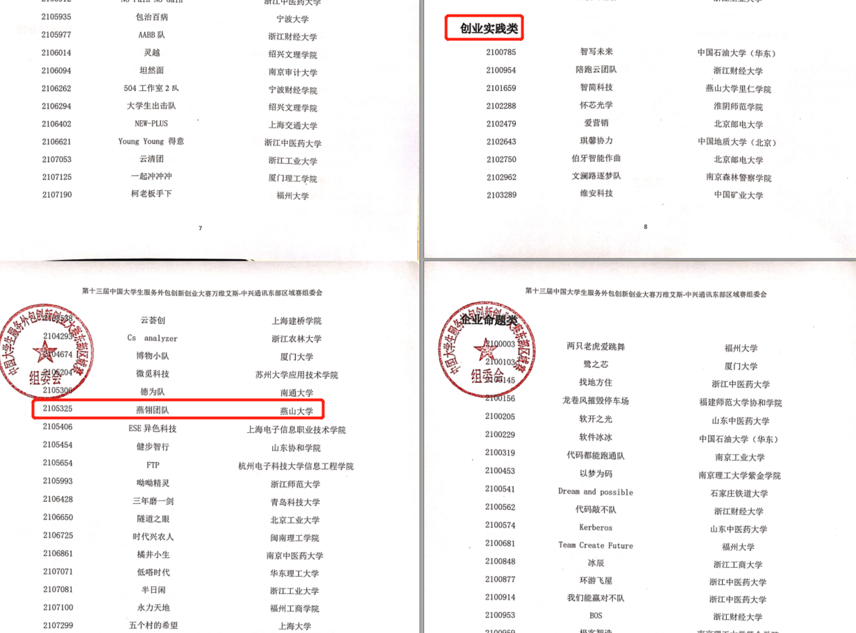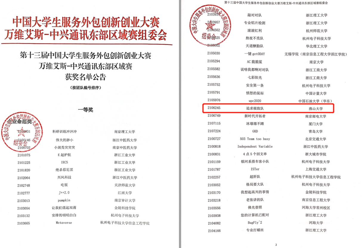 等学院200多位同学的参与,共收集了全校12个企业命题类项目和2个创业实践类项目。在5月28日举办的第十三届中国大学生服务外包创新创业大赛万维艾斯-中兴通讯东部区域赛中, “追求极致队”获得企业命题类一等奖,“燕翎团队”获得创业实践类二等奖。另有我校参赛团队“就是我们队”、“创新青春小队”、“分布式学习”获得企业命题类三等奖,“御安科技”获得创业实践类三等奖。