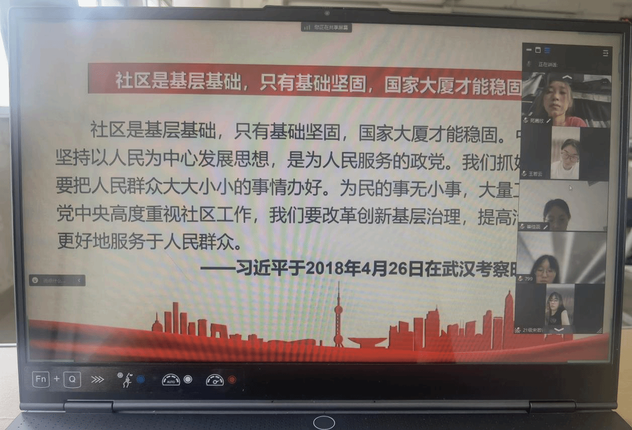 本科生第六党支部一起线上线上参加“凝心铸魂 聚力发展”空中课堂第九期培训班,一起学习观摩这传播党创新理论的“红色直播间”。