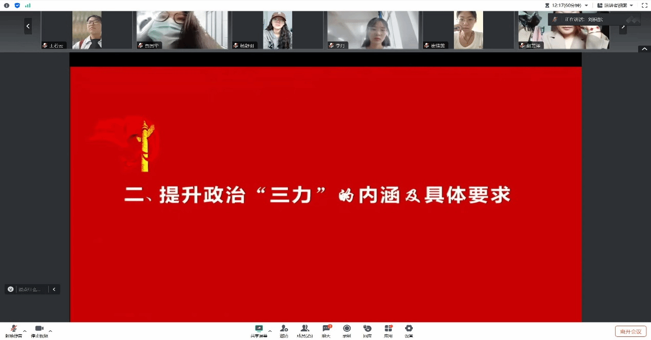 本科生第六党支部组织党员集体参与了“凝心铸魂·聚力发展”党员空中课堂第十期培训班的学习。由于到部分专业党员在外实习,本次学习以线上会议的形式开展。