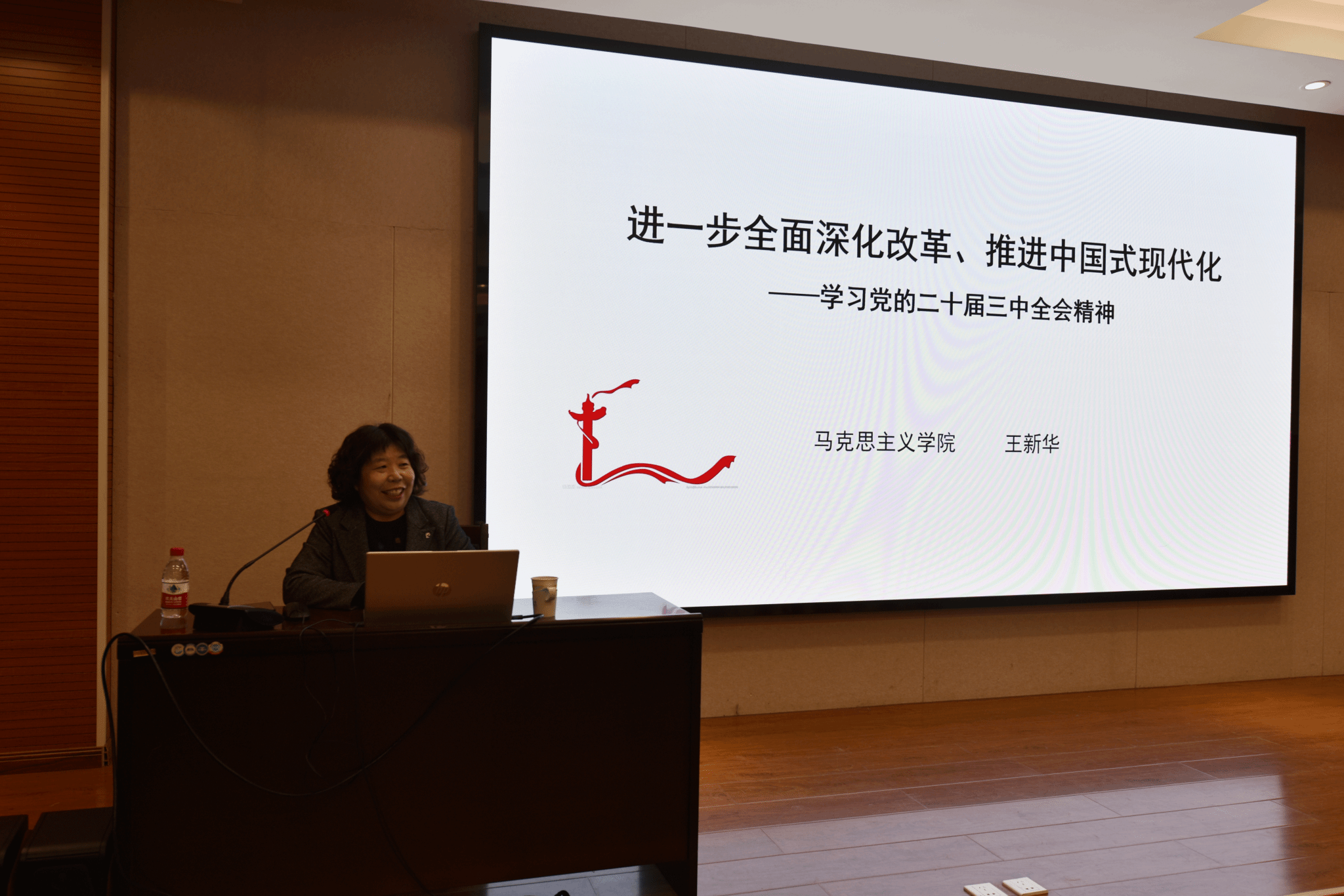王新华教授围绕四个方面进行了授课,从“三中全会:改革是不变的主题”,指出改革的重要性,是改革让中国赶上时代;战略擘画:进一步全面深化改革的宏观阐释;子落盘活:进一步全面深化改革的重大举措,紧紧围绕推进中国式现代化全面深化改革为主题,以“中国之制”推进“中国之治”;根本保证:保持以党的自我革命引领社会革命的高度自觉。通过对这四方面的精细解读,使在座师生们更深刻地理解党的二十届三中全会精神实质和核心要义。