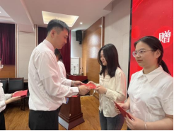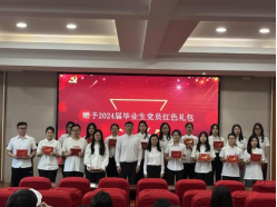大会第四项,唱思迪老师和吉康老师为全体毕业生党员们发放“一徽一章一信”的红色礼包,温馨的赠礼承载着学院党委对毕业生党员同志们的殷切祝福和谆谆嘱托。