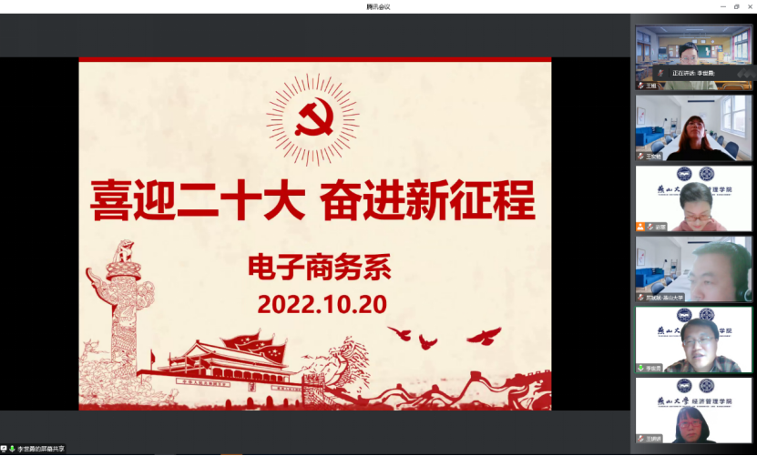 10月20日下午,电子商务系党支部以线上会议方式深入学习了党的二十大报告,支部书记李世勇主持了学习活动,电子商务系全体教师参加了学习活动,嗨皮漫画