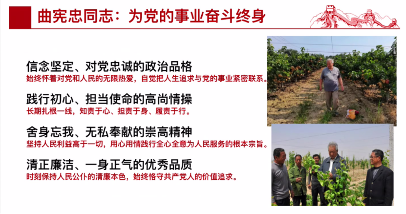 “曲宪忠同志坚守初心、恪尽职守的先进事迹深深感染了支部每一位党员,支部内掀起了一股向榜样看齐的“分享”热潮。