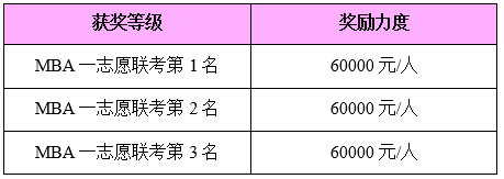 的MBA考生,按联考成绩由高到低排序,前三名每人将获得6万元奖励。本奖学金评审工作在新生入学后进行。
