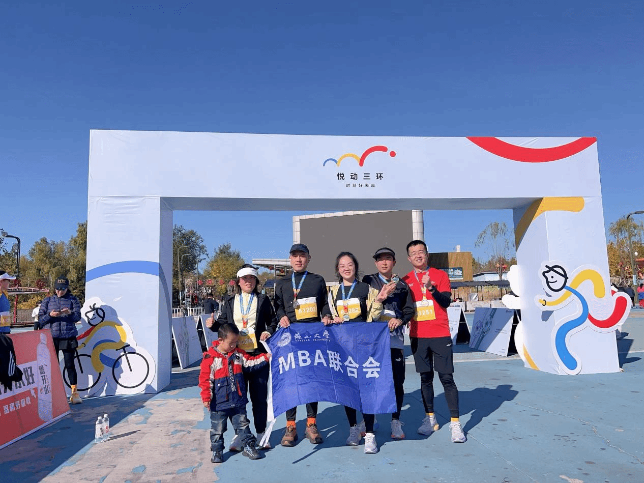 更令人动容的是团队协作的细节:有队员体力稍弱时,立刻有其他成员放慢速度陪跑;补给站前,大家主动分享能量胶和水;冲过终点后,集体在签名墙前合影,高喊“燕大MBA,永不止步”的口号。跑步看似是个体运动,但团队的凝聚力恰恰体现在互相支持中——这和MBA课堂里学的‘团队管理’‘领导力’课程异曲同工。”