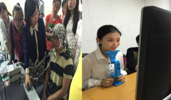 认知科学实验室向全校开放,一方面组织培训教学,帮助有研究兴趣的老师和学生掌握眼动仪、脑电仪的实验设计与研究技术,另一方面接受电气学院、艺术学院等其他学院教师的申请,进行科研项目的研究工作。